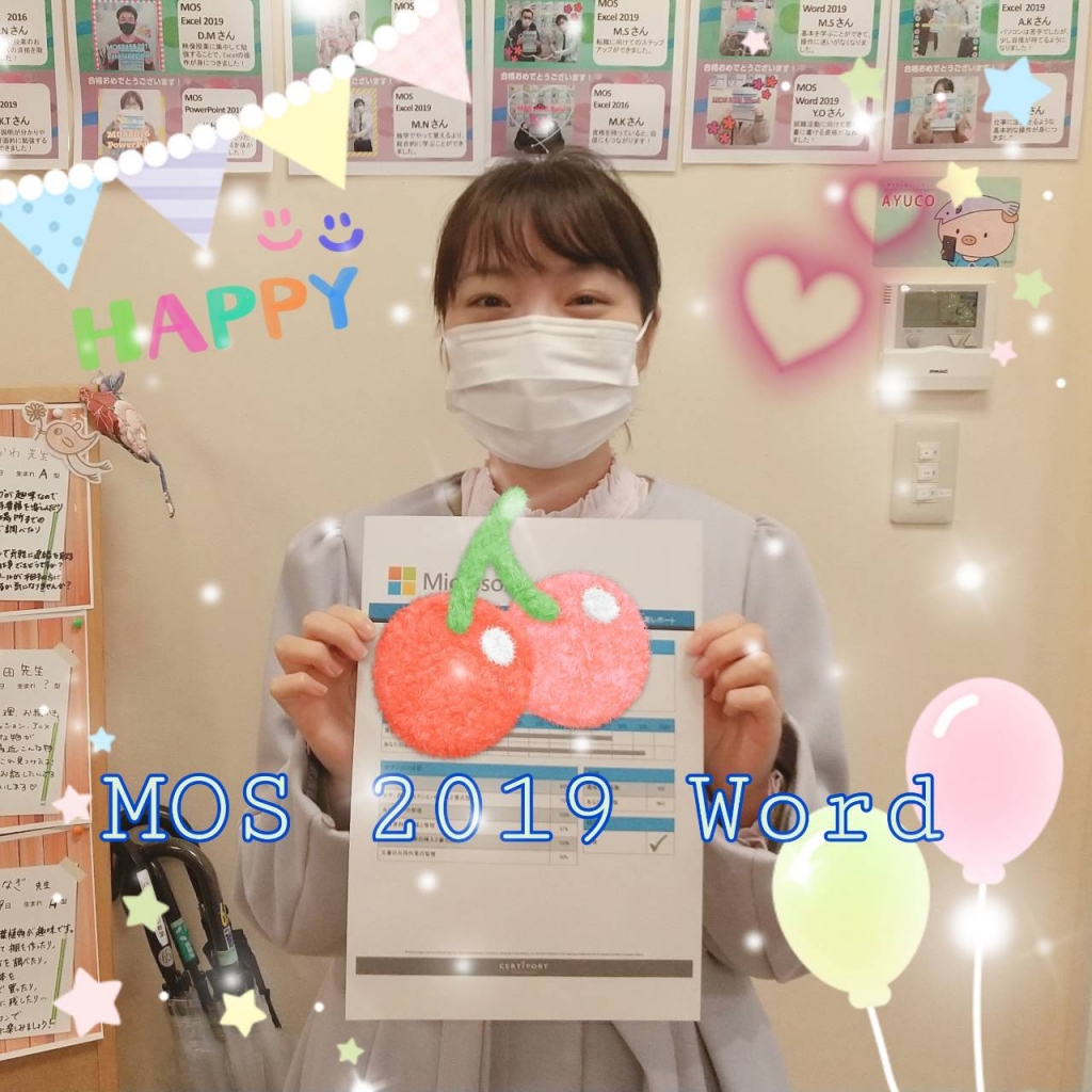 MOS Word 2019 に合格されたSさん