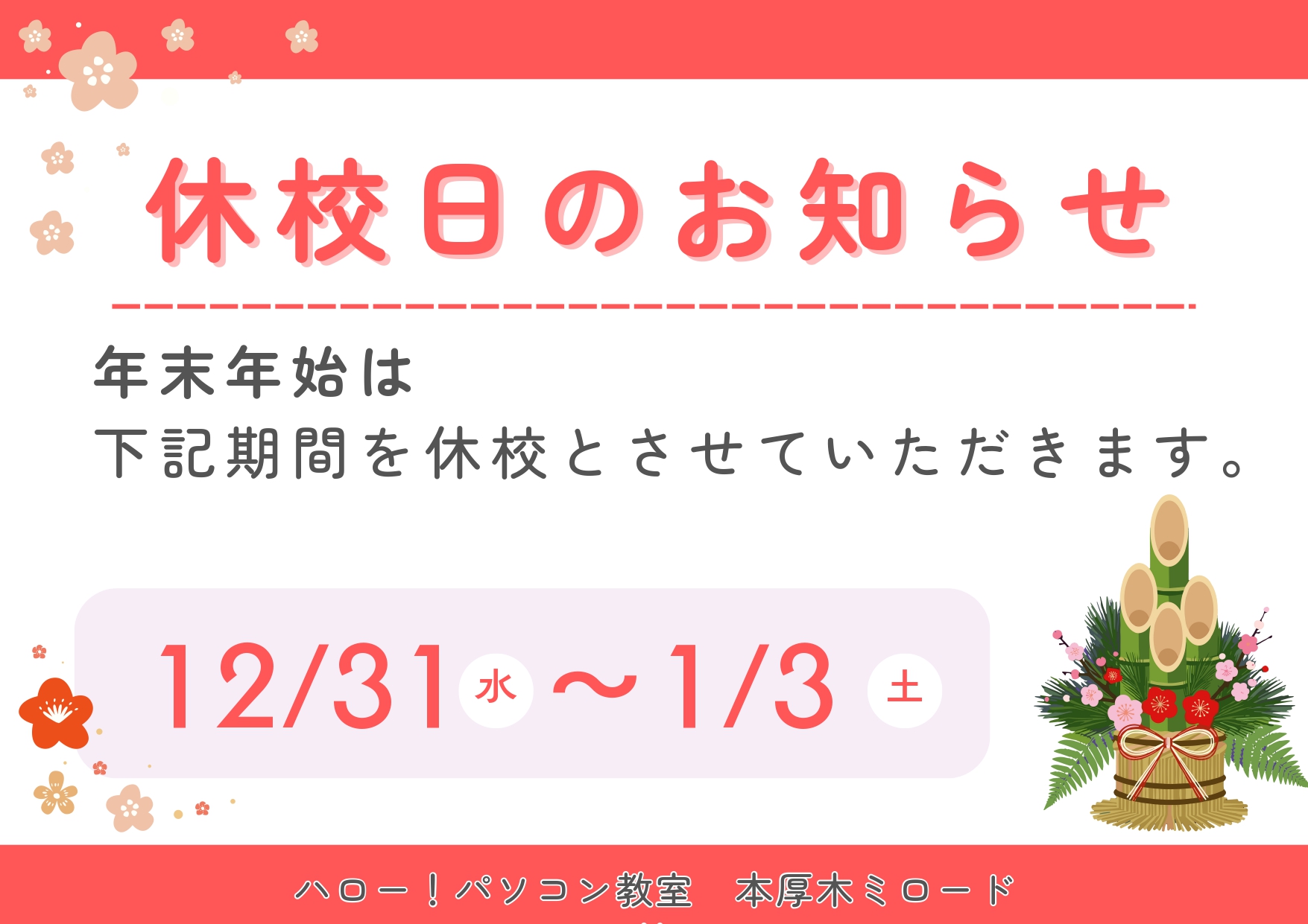 年末年始営業のお知らせ
